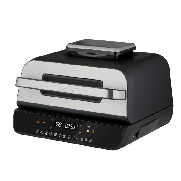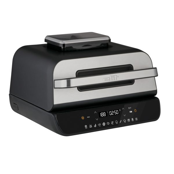 Grill dhe tigan me ajër 12-në-1 me ekran LED dhe sensor të saktë temperature ofron gatim të shpejtë dhe të shëndetshëm me 95% më pak yndyrë, me 12 programe automatike, një sistem ngrohjeje të dyfishtë, qarkullim ajri 360° dhe aksesorë jo-ngjitës të lehtë për pastrim.