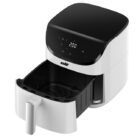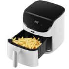 Friteza me ajër të nxehtë Elit NutriFry është perfekte për përgatitjen e vakteve të shijshme dhe të shëndetshme me deri në 80% më pak yndyrë krahasuar me metodat tradicionale të skuqjes. I pajisur me një motor të fuqishëm 1500W, ai lejon qarkullimin e shpejtë të ajrit të nxehtë, duke rezultuar në gatim më të shpejtë dhe më efikas të energjisë. Me një kapacitet prej 5L, është ideal për përgatitjen e vakteve për të gjithë familjen.