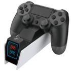 Karikues elegant, i bardhë me te zezë karikon në mënyrë efikase dy kontrollues PS4 njëkohësisht. Dizajni i tij kompakt dhe kablloja e përshtatshme 0,8 metra e bëjnë atë një shtesë praktike për çdo konfigurim lojërash.
