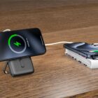 Nëse keni një pajisje që mbështet karikimin me valë përmes protokollit QI, nuk do t’ju duhet më të përballeni me asnjë problem me kabllot e karikimit. Thjesht vendoseni telefonin tuaj në sipërfaqen e power bankit, ndizeni dhe pajisja juaj do të fillojë të karikohet me valë. Power Bank është i shkëlqyeshëm, kryesisht për shkak të peshës së tij të ulët (vetëm 206 gram) dhe dimensioneve të vogla me një mbajtës metalik.